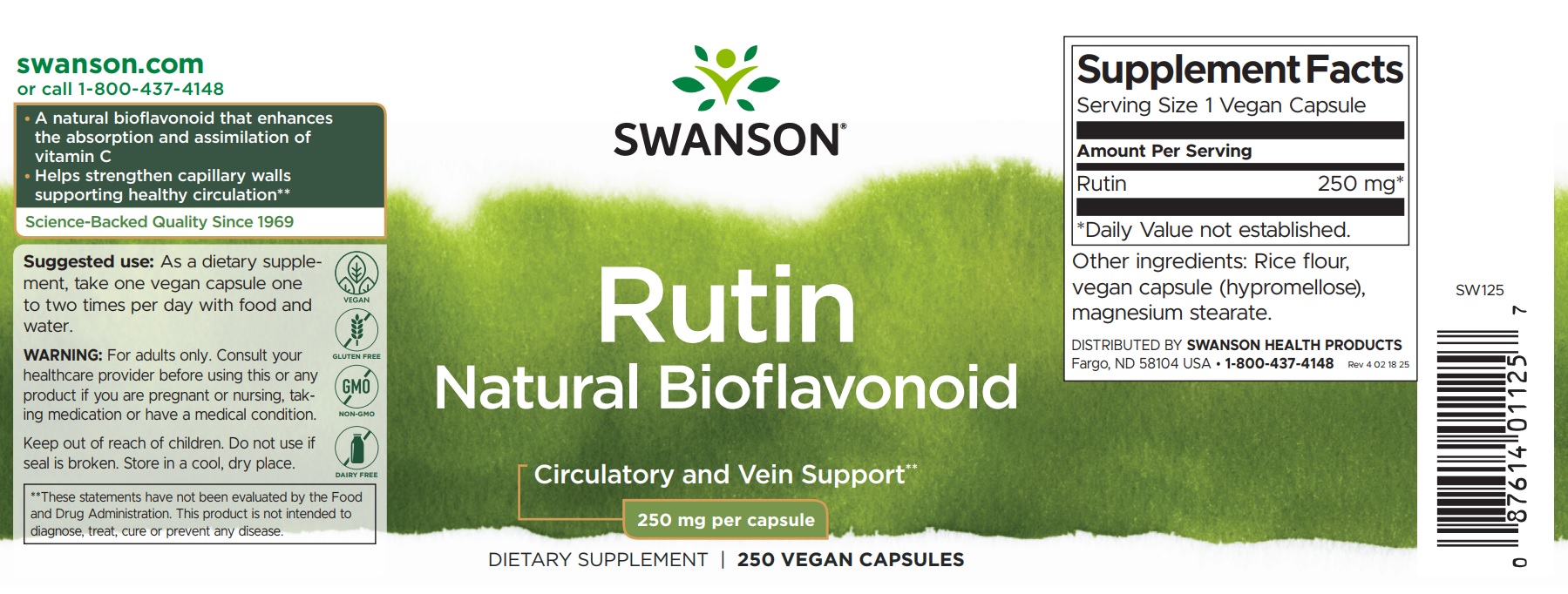 Fight free radicals with Swanson Rutin! This powerful antioxidant bioflavonoid works in combination with vitamin C to protect your cells from free-radicals. Rutin may help strengthen capillary walls and support healthy veins to promote circulatory system function.