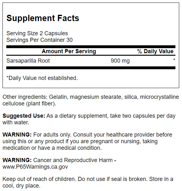 | Sarsaparilla (Smilax aristolochiifolia) (root) | 900 mg | * |