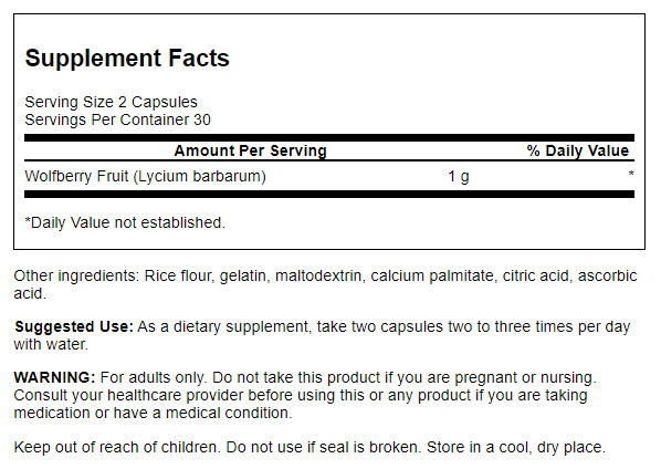 | Wolfberry Fruit (Lycium barbarum) | 1 gram | * |