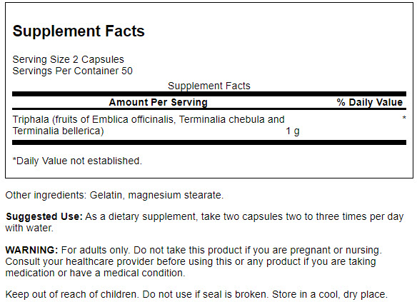 Con l’aiuto della Trifala di Swanson scoprirete quanto sara facile depurare il vostro organismo, senza che questo provochi il suo indebolimento. Questo estratto effettivo viene dall’India ed e usato tradizionalmente nelle formule di Ajurveda. La triphala include la forza dei frutti amla, behada e charada i quali aiuteranno il vostro apparato digerente a funzionare bene in modo innocuo, somministrando il prodotto quotidianamente.