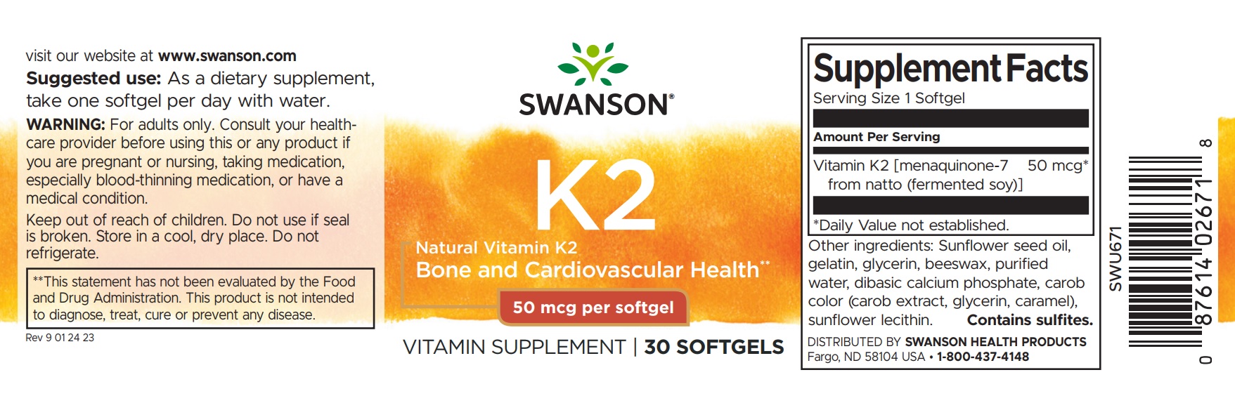 Swanson Natural Vitamin K2 (Menaquinone-7 from Natto) is the most biologically active form of vitamin K2. Everyone knows about calcium and vitamin D for bone health, but what about vitamin K2? If there’s one vitamin you should know more about, this one’s it. While vitamin K is mostly known for its involvement in blood clotting, K2 also helps to activate the proteins that regulate where calcium ends up in the body, promoting healthy levels in both bones and arteries. Meaning this little-known vitamin is a powerhouse when it comes to healthy bones, and a healthy heart. Our vitamin K2 is derived from 100% natural Japanese natto (a fermented soybean product), and because the Western diet is typically low in fermented foods, it also tends to be low in K2. Since vitamin K2 is fat soluble, we deliver ours in sunflower oil-based softgels for optimum bioavailability.