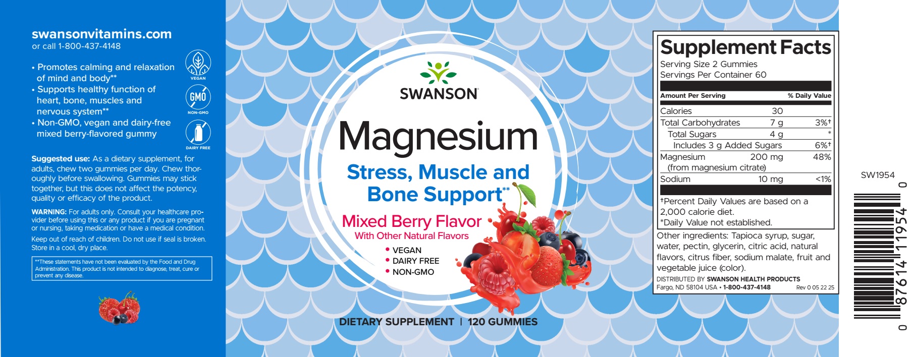 Magnesium has held an important spot in bone health regimens for decades, but it is gaining popularity for promoting mental and physical relaxation. For a tasty twist on this essential mineral, try Swanson Magnesium Gummies. These vegan and dairy-free gummies deliver 200 mg of gentle magnesium citrate in each gummy with a juicy mixed berry flavor that’s sure to please any palette. Magnesium plays an important part in over 600 enzymatic reactions in the body including energy metabolism and protein synthesis as well as the healthy function of the brain, heart, muscles and nervous system. Dietary sources of magnesium include seeds, greens, nuts, legumes and more. Unfortunately, many people do not consume enough, due in part to nutrient-depleted soil and processed foods. Swanson Magnesium Gummies are a delicious and convenient way to get more of this beneficial nutrient. We feature the citrate form for better absorbability.