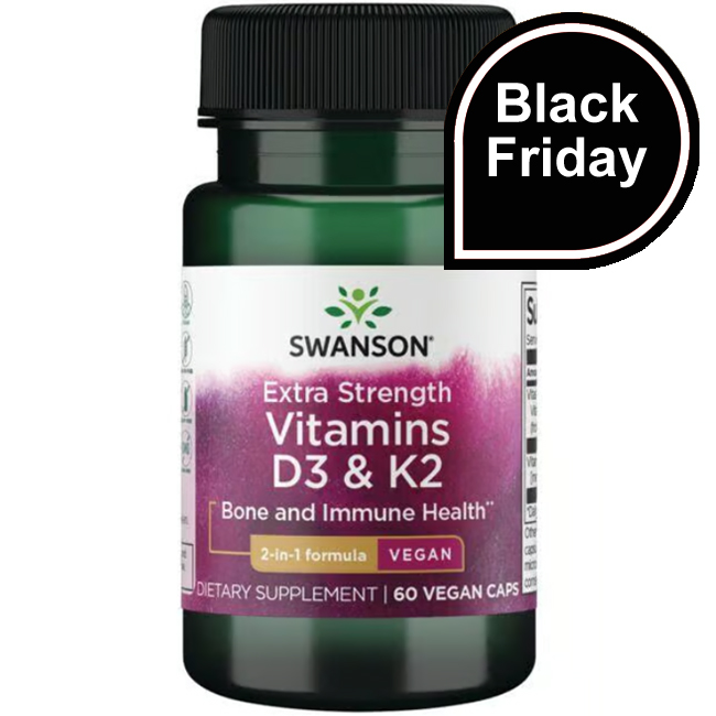 Better together! Emerging research suggests that vitamins D3 and K2—two key nutrients for efficient calcium usage in the body—may have an even more beneficial effect when taken together. Swanson Vitamins D3 & K2 offers these bone and heart health helpers in a convenient, one-a-day veggie capsule. Vitamin D helps build strong bones by increasing the body’s absorption of calcium and phosphorus. In supplement form, it is available as ergocalciferol (D2) or cholecalciferol (D3). Studies indicate that D3 may be the more potent and longer-acting form preferred by the body. Similarly, vitamin K is found in K1 and K2 forms. K2 is of particular importance for the health of bones and cardiovascular system as it helps direct calcium out of the arteries and to the bones. K2 is made up of a series of menaquinones, of which menaquinone-7 (MK-7) is most efficiently absorbed and bioavailable. New understanding of the interaction of vitamins D and K suggests that vitamin D enhances the concentration of bone proteins that rely on vitamin K for healthy bone formation and in turn, the essential mineralization stimulated by vitamin K may be positively impacted by the presence of vitamin D. Swanson Vitamins D3 & K2 provides 125 mcg (5,000 IU) of vegan D3 derived from lichen and 100 mcg soy-free chickpea-sourced K2 as MK-7 in a once-daily veggie cap to help maintain cardiovascular health and promote strong, healthy bones.