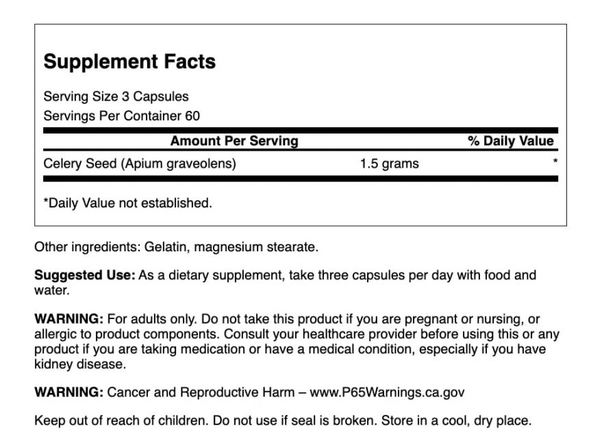 • Each capsule delivers 500 mg of celery seed