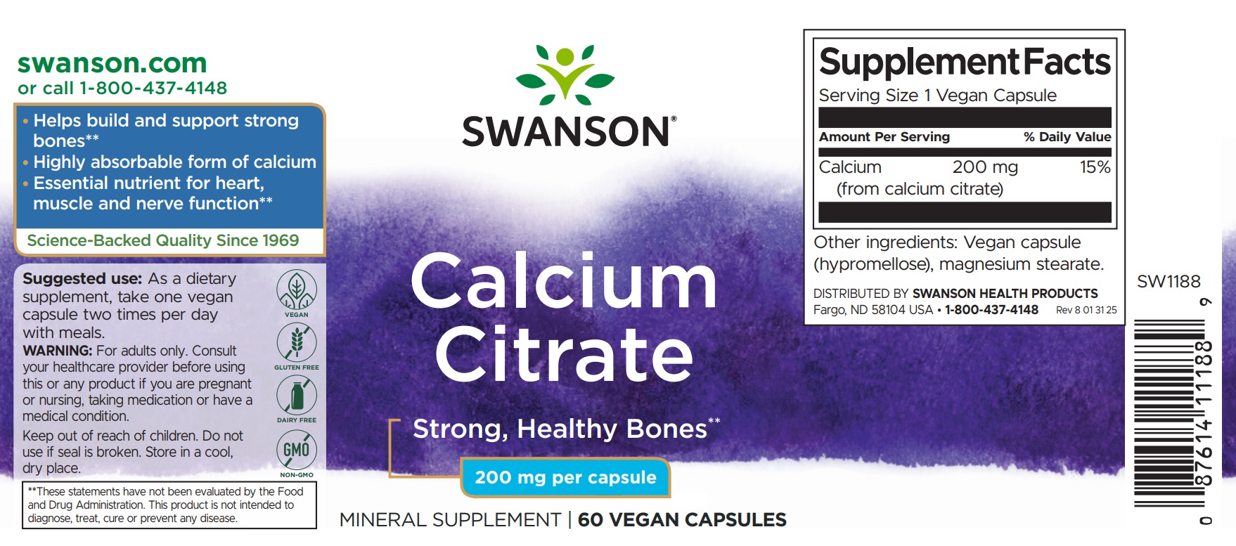 Calciumcitrat ist eines der absorbierbaren und bioverfügbaren Formen der zusätzlich Calcium. Für diejenigen, die ein reines Calcium Citrate ohne Zusatz von Magnesium, Vitamin D oder andere Nährstoffe bevorzugen, präsentieren wir diese ökonomische 200 mg Kapseln. Alles, was Sie wollen, nichts, was man nicht tut, zu einem günstigen Preis. Das ist eine intelligente Ergänzung.
