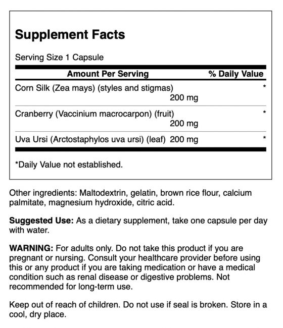 Cranberry, uva ursi and corn silk make the top of the list for traditional nourishment of urinary tract health and comfort. While the cranberry component is likely recognizable, the others should be as well. Uva ursi, for example, was listed in the U.S. Pharmacopeia for years as a beneficial adjunct for support of kidney and urinary tract health. Corn silk too has a long history as a dietary aid. Swanson Herbal Urinary Care formula brings these traditions together in a pure, affordable supplement.