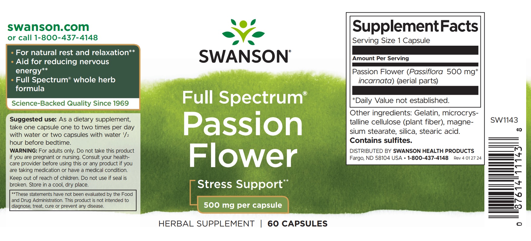 Soften the rough edges of your daily life with Swanson Passion Flower, an age-old herb that's recently been "rediscovered" as an aid for reducing nervous energy. While scientists continue to investigate the components within the herb that are responsible for its unique benefits, we're pleased to offer this quality, full-spectrum supplement featuring whole-herb passion flower to help gently take the edge off your stressful days.