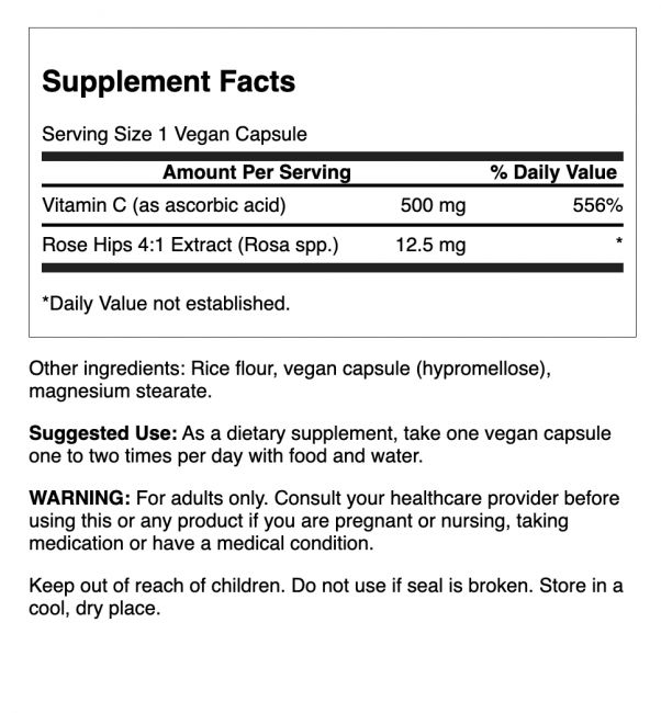 Obtain vitamin C at its finest with Swanson Vitamin C with Rose Hips! This free-radical fighting formula enhances vitamin C absorption with the help of rose hips which deliver bioflavonoids to the body.* Each capsule delivers 500 mg of vitamin C and 50 mg of rose hips.