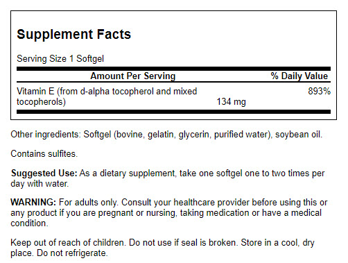 | Vitamin E (as d-alpha tocopherol plus mixed tocopherols: d-beta, d-delta, and d-gamma tocopherol) | 200 IU | 667% |