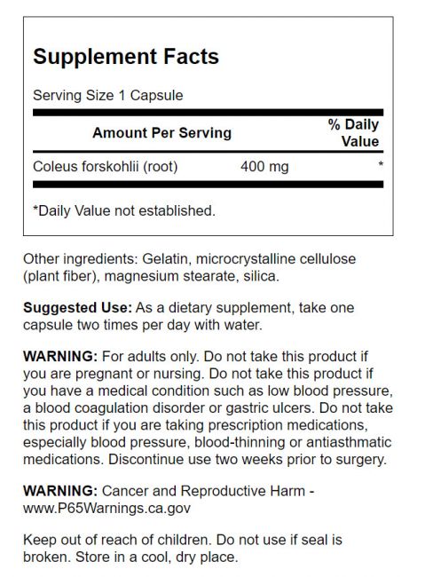 | Coleus forskohlii (root) | 400 mg | * |