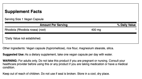 | Rhodiola Root (Rhodiola rosea) | 400 mg | * |