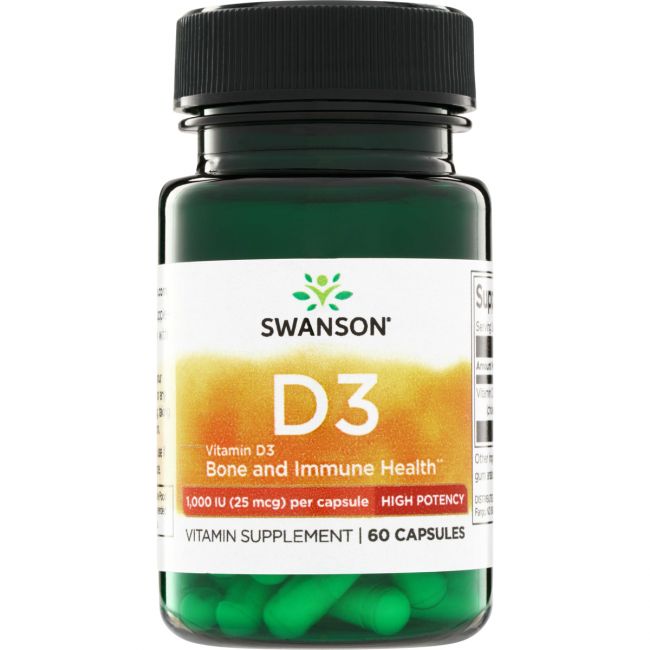 Swanson Vitamin D-3 is an essential bone supporting vitamin that works to absorb calcium efficiently in the body. The body manufactures some vitamin D on its own when it is exposed to sunlight, but for people living in the northern latitudes where wintertime sun exposure is limited, the body's natural vitamin D may often be insufficient. Our High Potency Vitamin D-3 capsules tackle this problem by supplying an impressive 1,000 IU of vitamin D-3, the most biologically active fraction of vitamin D.