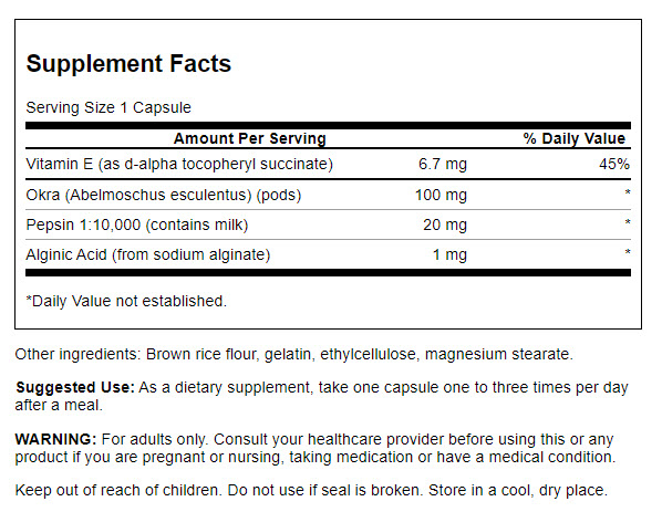 Okra Pepsin is our version of a classic professional formula popular since the 1960s. Combining the digestive enzyme pepsin with okra, a source of fiber, these capsules make a great addition to any daily program for gastrointestinal and colon health.