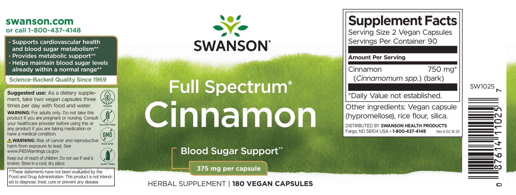 La cannella aiuta l’organismo a mantenere sani i livelli del glucosio e dell’insulina nel sangue il che garantisce che tutte le cellule ricevano l’energia della quale hanno bisogno per poter svolgere bene le proprie funzioni biologiche. I flavonoidi naturali contenuti nella cannella aiutano l’insulina nel nostro organismo a “lavorare” in modo piu effettivo. Il prodotto Cannella di Swanson contiene 375 mg di cannella pura in comode capsule, fatto che rende l’assunzione di questa magica erba aromatica piu facile che mai.