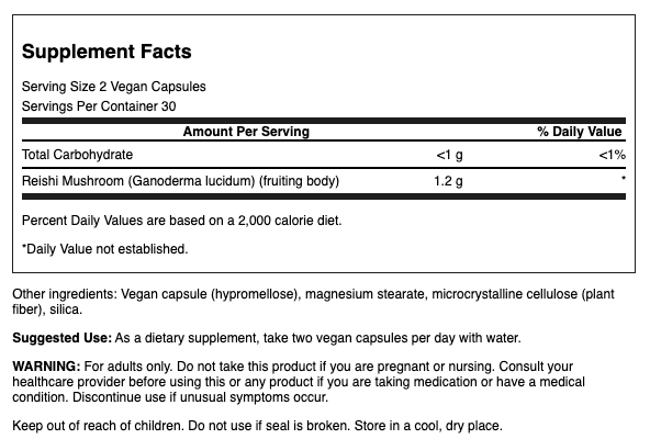 | Reishi Mushroom ((Ganoderma lucidum) (fruiting body) | 1.2 g | * |