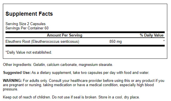 | Eleuthero Root | 850 mg | * |