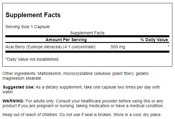 | Acai Berry (Euterpe oleracea) (4:1 concentrate) | 500 mg | * |