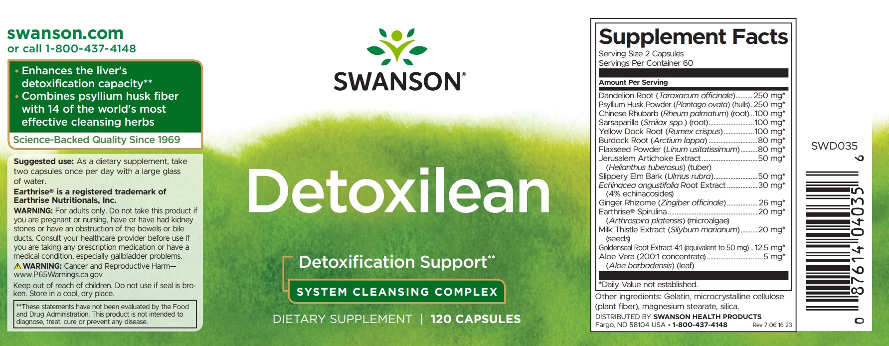 This may just be our most effective internal cleanser ever! Swanson Detoxilean combines psyllium husk fiber with 14 of the world's most effective cleansing herbs to nourish and tone the liver and intestinal tract and facilitate the removal of toxins from the body.