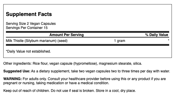 You probably don't spend much time thinking about your liver, but it does lots of heavy lifting for you! It filters out toxins from your blood at the amazing rate of a quart per minute. It sorts out the good from the bad, keeping anything useful and tossing out the junk. As the world becomes more and more toxic, a liver working at optimal capacity plays a bigger role in health and wellbeing than ever before. Swanson's Milk Thistle supplement is the ultimate in liver health. Silymarin, a powerful antioxidant flavonoid, contains specific protective benefits for liver tissues, making milk thistle a premier liver tonic. Our convenient capsules deliver 500 mg of milk thistle nutrition that won't put a dent in your pocketbook.