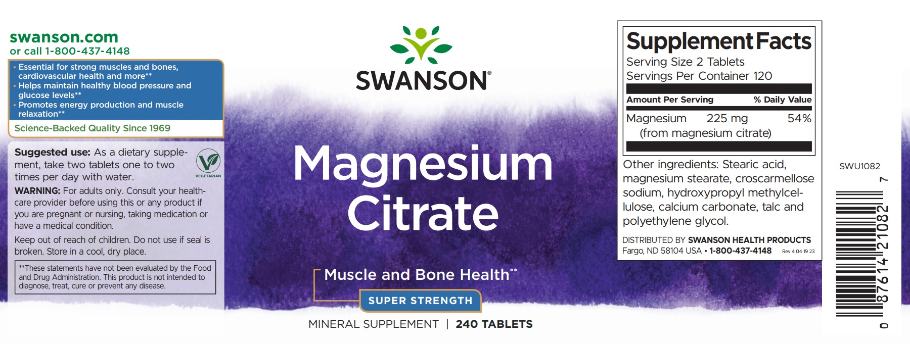 Are you getting enough magnesium in your diet? If not, don’t worry, because we’ve got Swanson Super-Strength Magnesium Citrate. What is magnesium? Magnesium is an essential mineral and can be found in abundance in seeds, whole grains, dark green leafy vegetables and some types of fish. Magnesium is important because it plays a key role in the basic cellular function of the heart and nervous system, offering cardiovascular support and promoting healthy blood pressure levels. Magnesium is also the catalyst for enzyme reactions that create energy. Magnesium has long been popular for its soothing properties. Studies now suggest a link between magnesium and stress. Intakes of 300-500 mg per day may help promote healthy levels of cortisol, the stress hormone, by influencing the activity of the hypothalamic-pituitary axis.