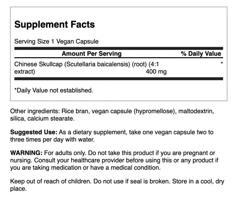 | Chinese Skullcap (Scutellaria baicalensis) (root) (4:1 concentrate) | 400 mg | * |