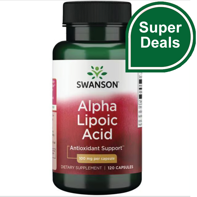 Erhöhen Sie ihren Antioxidans-Schutz mit Swanson Alpha-Liponsäure! Oft wird sie „das universale Antioxidans“ genannt, weil sie sowie die wasserlöslichen, als auch die fettlöslichen freien Radikalen neutralisiert, die Alpha-Liponsäure unterstütz auch die Aneignung und die Verarbeitung von anderen Antioxidanten, wie Vitamin C und E, indem sie ihre Wirkung im Körper verlängert.