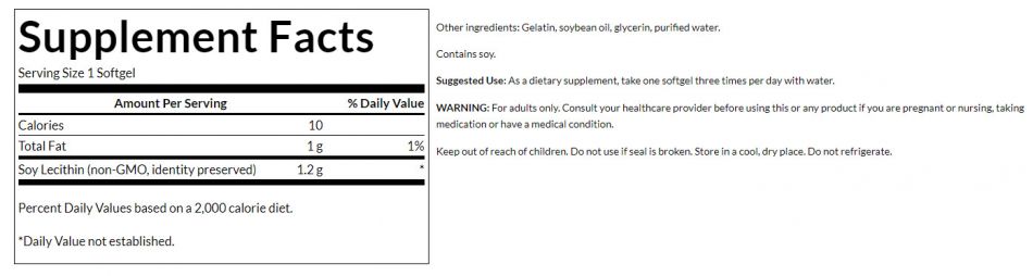 Try Swanson Lecithin if you want to maintain healthy cholesterol levels and aid the function of your cardio-vascular system. This exceptional supplement is an excellent fats emulsifier, which contains phosphatidylcholine, promoting the function of the brain and liver. Each easily digestible capsule provides 1,200 mg of soy lecithin.