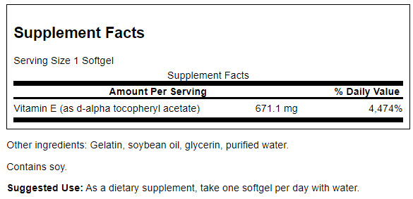 For more than just a heart-health vitamin, try Swanson's Vitamin E. Vitamin E's antioxidant properties help protect vital tissues throughout the body against the ravages of free radicals. Our high-potency softgels feature 1000 IU of 100% d-alpha tocopherol vitamin E.