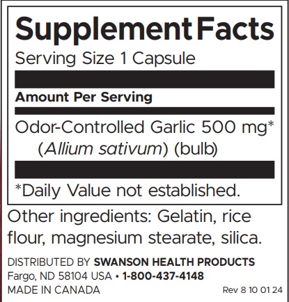 Swanson Odor-Controlled Garlic is an effective way to get the benefits of garlic without the negative odor that comes along with many garlic supplements. Each capsule delivers 500 mg of garlic to benefit cardiovascular health without the lingering smell on your breath. The allicin in garlic may also support the immune system by producing more natural killer (NK) cells in the blood.