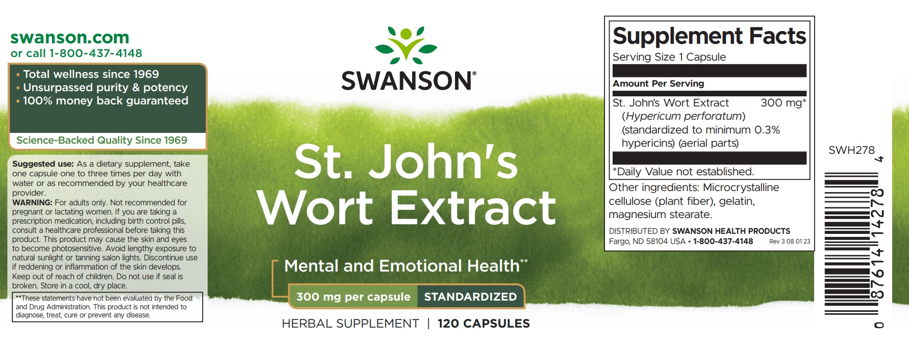 Millions of people are finding comfort in St John's Wort's ability to help them enjoy life to the fullest. Swanson St. John's Wort contains powerful components that promote emotional wellness.